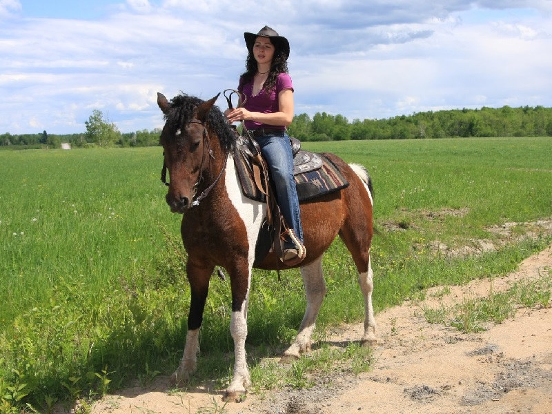 Chip is a bay pinto mare born on June 26th 2004. She is 15 hands tall and registered with ABC (3315) and ICHO (1343-D). She has sociability flowing through her veins. She appreciates to be around people and will do everything she can to get your attention. She is a pleasant horse to ride that will appeal to anyone.